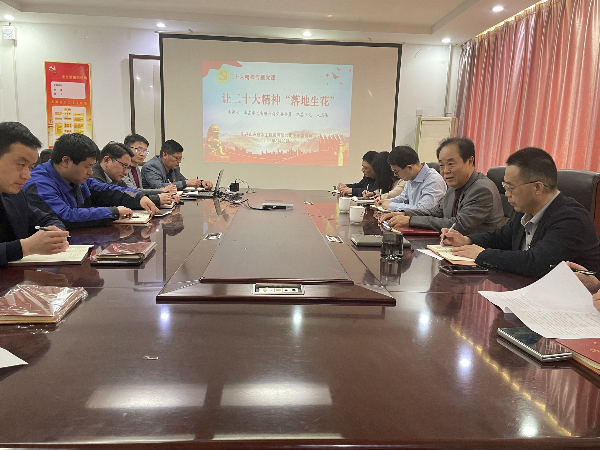 会议最后,朱瑞伟同志讲授了“让二十大精神‘落地生花’”的专题党课。